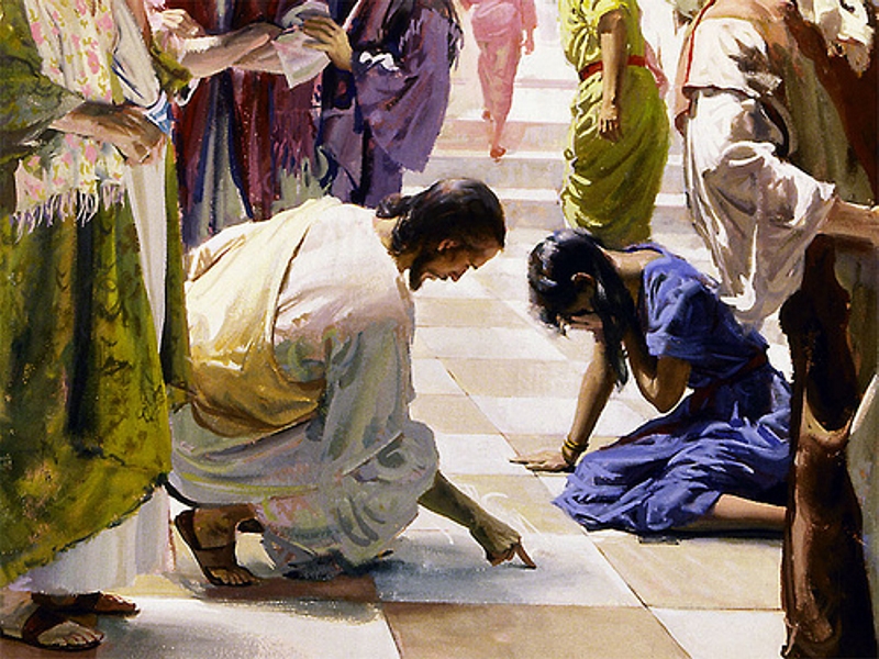 Pero los líderes religiosos creen que Jesús va a tener que equivocarse en condenar a la mujer a la muerte e ir en contra de la ley de los romanos o rehusar aplicar la ley de Moisés en extenderle compasión a la mujer adultera.