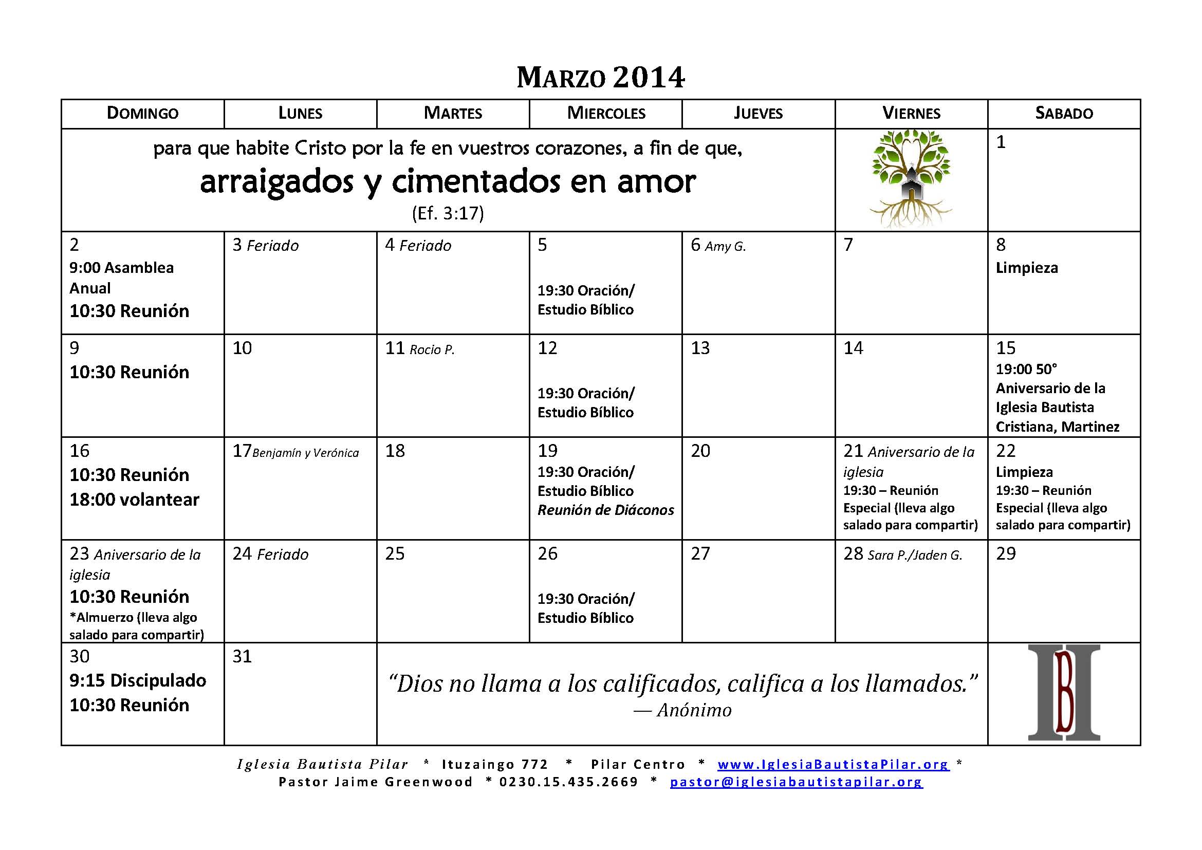 Anfitrión: Iglesia Bautista Independiente de Pilar