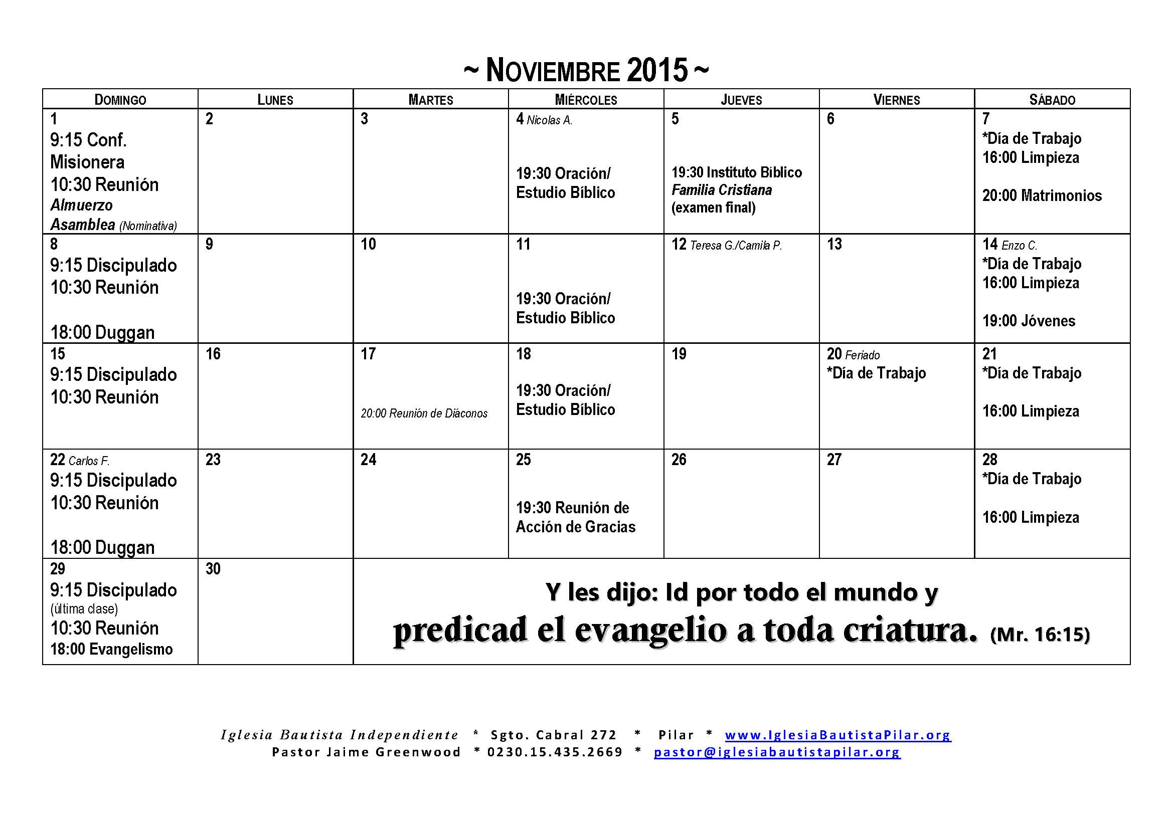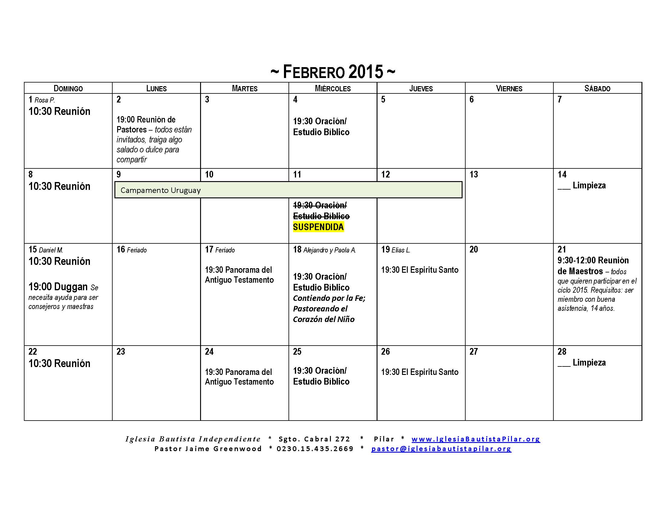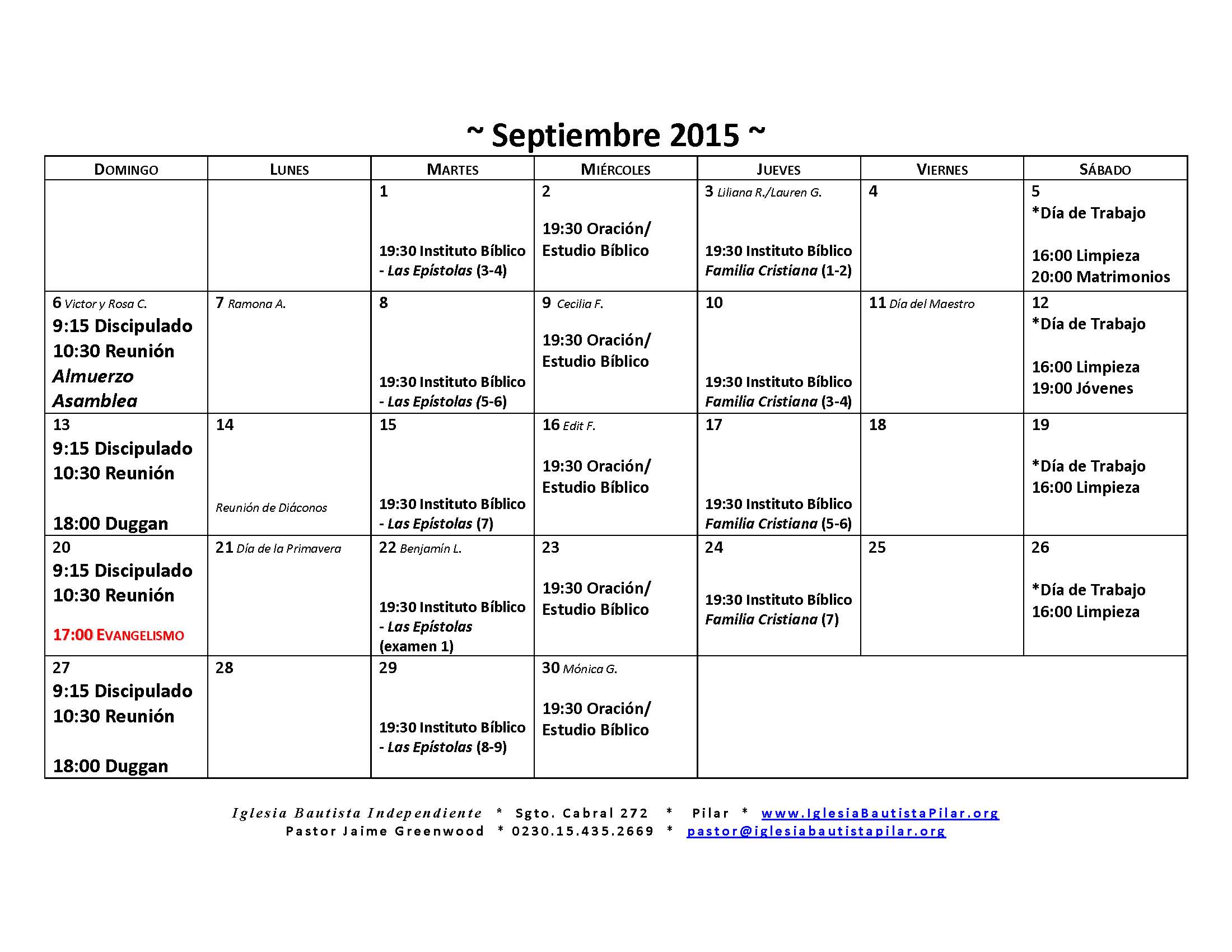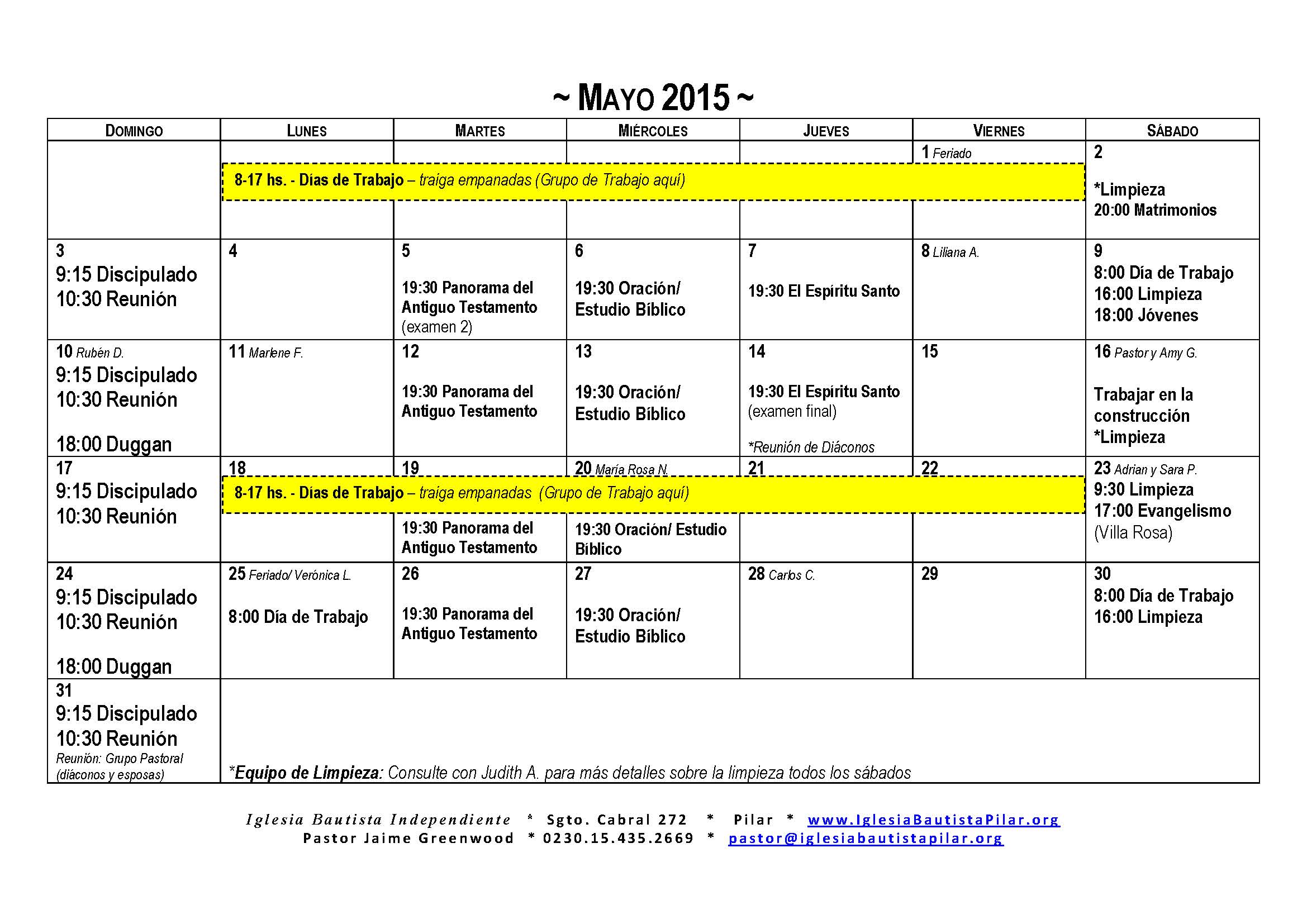 Para el almuerzo el día domingo, 22/3, los hermanos deben traer una ensalada y gaseosas para su familia y un poco extra para nuestras visitas.